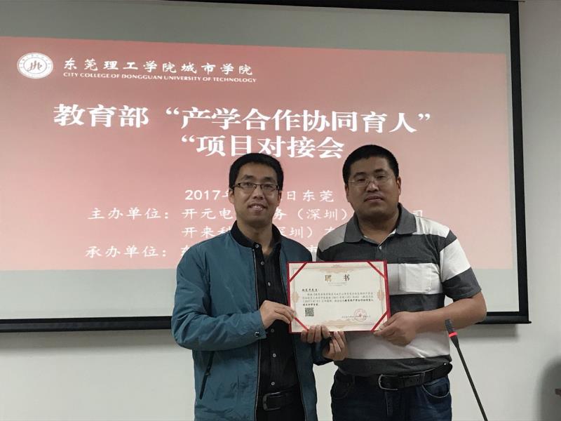 2017年12月2日,教育部产学合作协同育人项目(第二批)项目评审与洽谈会在东莞理工大学隆重举行。大会由开来科技(深圳)有限公司、开元电子商务(深圳)有限公司主办,东莞理工大学承办。来自大连理工大学等全国30余所高校,以及企业代表参加了会议。公司教师赵东平博士被聘为教育部产学合作协同育人项目评审专家。