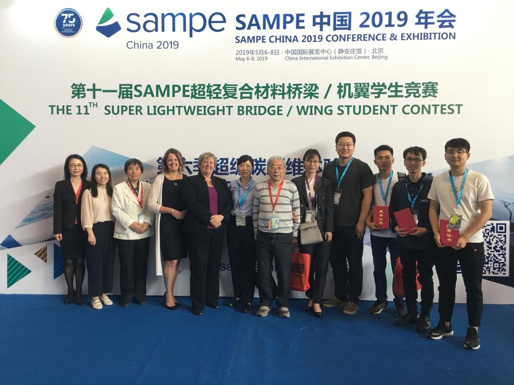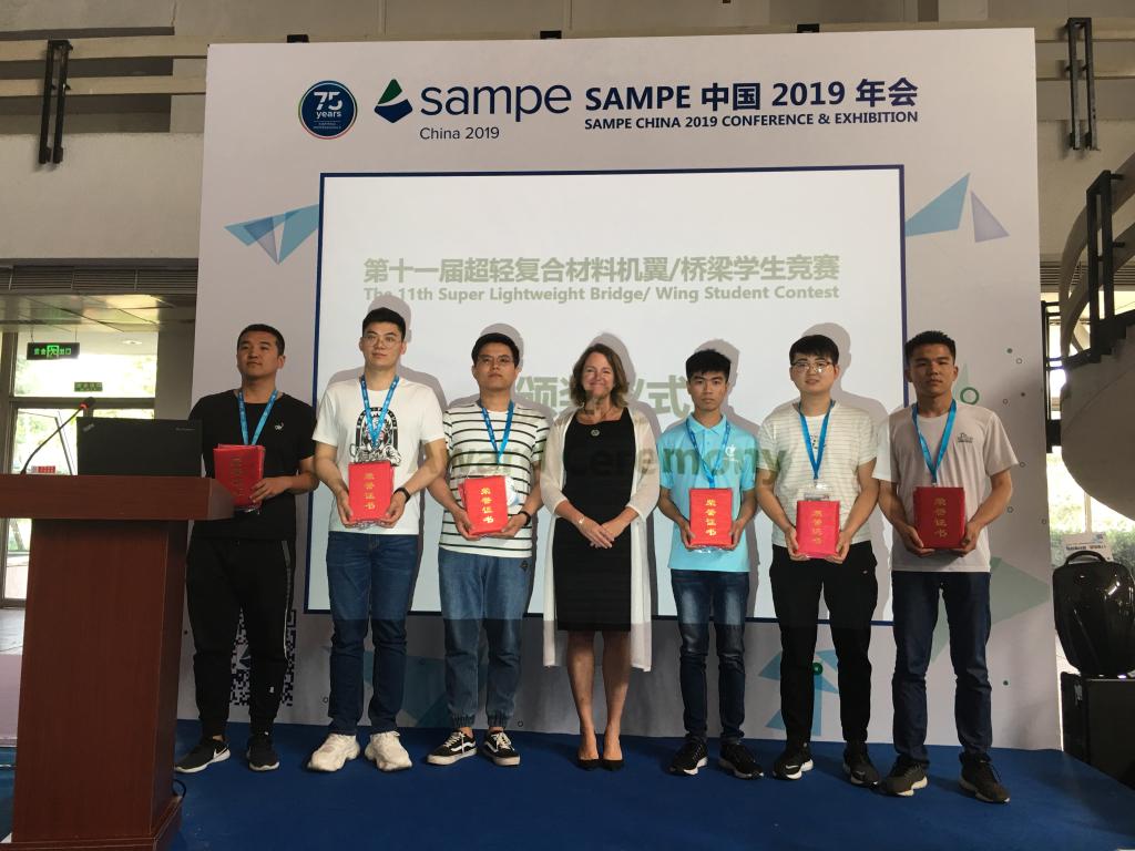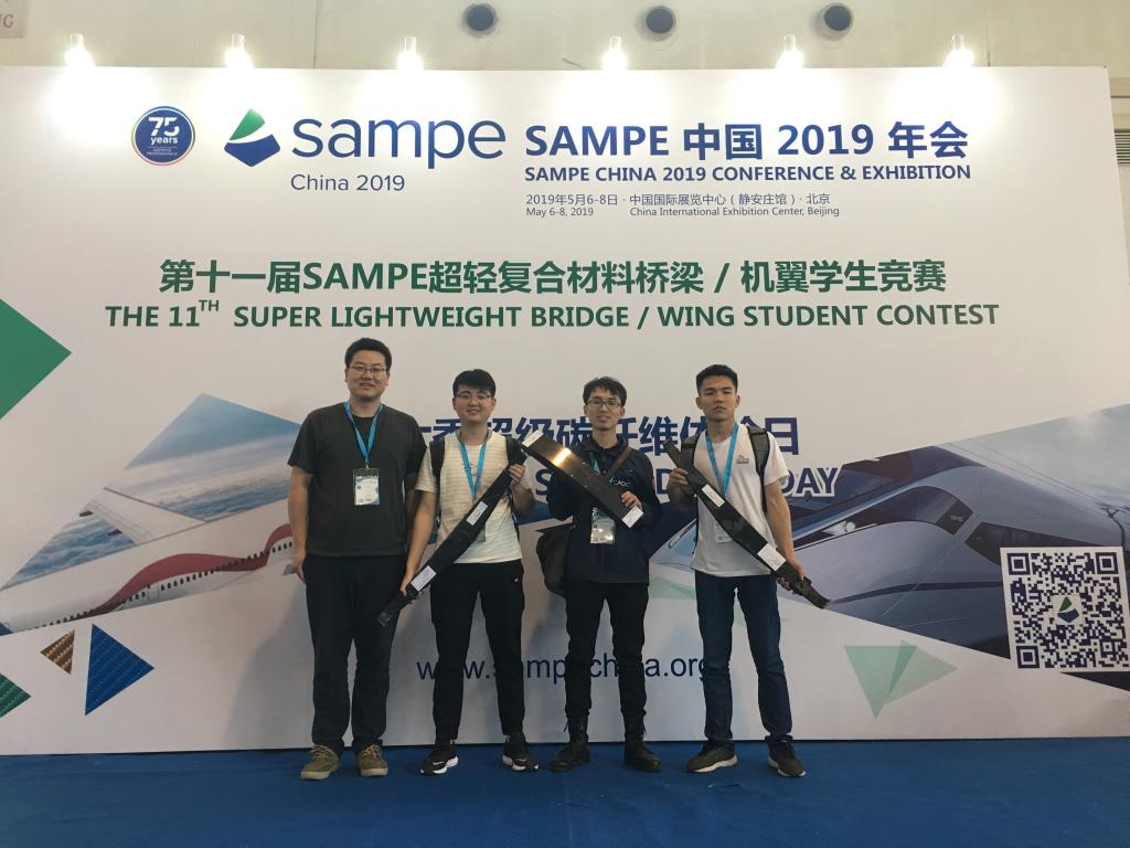 2019年5月6日至8日,由中国航空学会、SAMPE中国大陆总会共同主办,美国波音公司、中航复合材料有限责任公司赞助支持的第十一届SAMPE超轻复合材料机翼/桥梁员工竞赛在北京中国国际展览中心成功举办。公司王飞、赵慧老师指导的三支代表队参加了比赛。