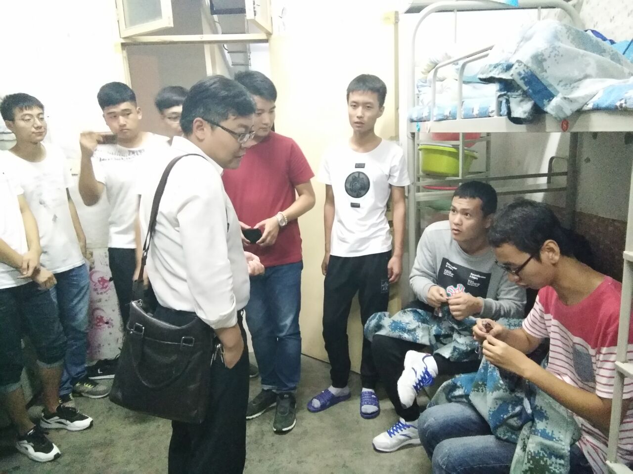 9月6日晚,党总支副书记杨光、员工管理科科长杜长龙及新生辅导员、院员工会干部深入员工宿舍慰问2017级新生。