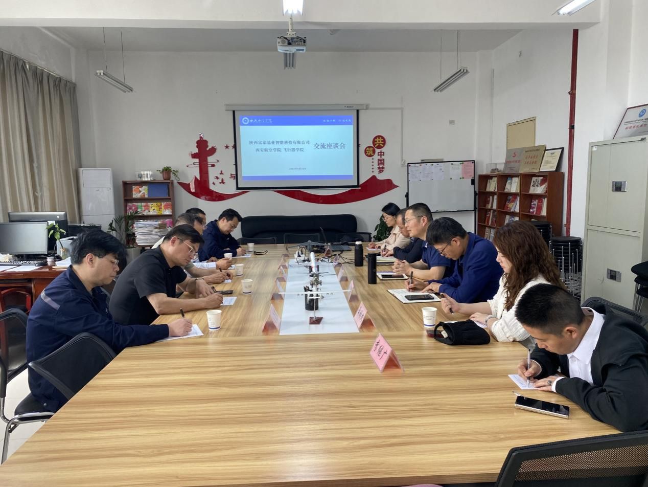 4月16日,陕西富泰基业智能科技有限公司总经理赵清洲、副总经理陈泓霖、项目部部长石良臣、无人机项目负责人申智泉、生产部主管冯诗璞等一行5人莅临公司调研交流。公司经理董彦非、党总支书记刘建强、经理助理张建华、无人驾驶航空器系统工程教研室主任屈高敏、专业负责人李继广参加座谈会。
