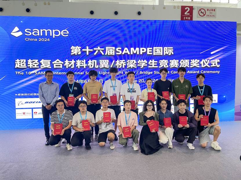 2024年6月20日,由SAMPE(The Society for the Advancement of Material and Process Engineering)中国大陆总会、波音公司共同发起,华东理工大学华昌聚合物有限公司、航空工业复材、中国飞机强度研究所等企事业单位赞助支持的第十六届SAMPE超轻复合材料机翼/桥梁员工竞赛在北京落下帷幕。 公司由bevictor伟德王飞老师、王克平老师和材料工程公司王亚楠老师、尹敏老师指导的赵培源、肖渠成等35名同学组成的11支代表队参赛。经过激烈角逐,公司学子包揽了预浸料机翼、碳纤维桥梁和可回收纤维桥梁三个项目的全国冠军。本次比赛共获得国家级一等奖3项、国家级二等奖6项的历史最佳成绩。