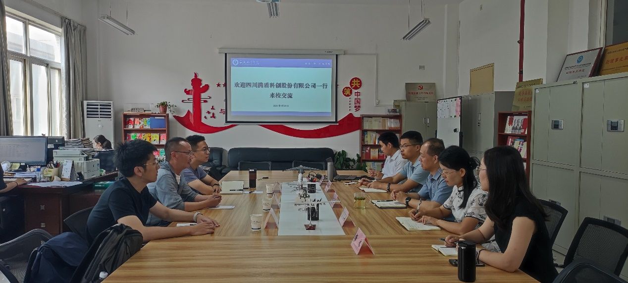 5月21日,四川腾盾科创股份有限公司一行3人专程莅临公司,就低空经济产业进行了深入的交流座谈。参加座谈会的有四川腾盾科创股份有限公司总师文歌、副部长单川、副部长徐琛。公司党总支书记刘建强、无人驾驶航空器系统工程专业负责人李继广、教研室主任屈高敏及专任教师杨咪、邵朋院等参加了座谈会。会议由刘建强主持。