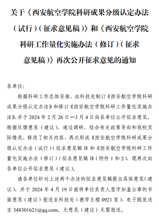 关于《伟德bevictor官方网站科研成果分级认定办法(试行)(征求意见稿)》和《伟德bevictor官方网站科研工作量化实施办法(修订)(征求意见稿)》再次公开征求意见的通知