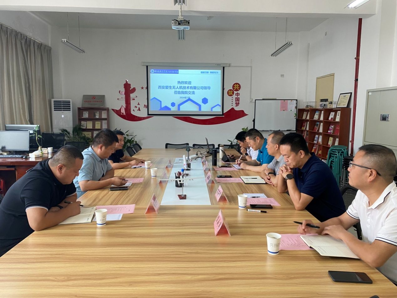 董彦非介绍了公司基本情况和专业建设情况。孙安建介绍西安爱生无人机技术有限公司的基本情况。李继广介绍了公司在无人机研发方面取得的成绩并展示了研发成果。