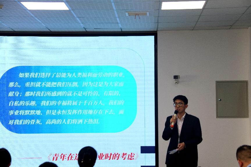 宣讲尾声,徐新老师发出号召,鼓励同学们奔赴西部、深入基层,投身祖国和人民最需要的地方。这不仅是一次简单的远行,更是一场淬炼灵魂的征程;这不是一时的热血冲动,而是关乎一生的郑重抉择。徐新老师全程声情并茂,宣讲内容丰富、感染力强,充分展现了公司辅导员爱岗敬业、心系员工、积极向上的精神风貌。
