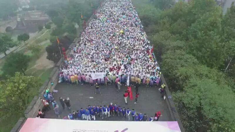 24日早晨,窗外下了一夜的雨还没有要停的意思,马拉松还要跑么?成了一个大问号,结果,当我们到达北门(安远门)登墙口的时候,似乎那个问号早已烟消云散。整个北门简直是水泄不通,大雨丝毫没有影响大家跑步的热情。而在此时,我们偶遇校本部跑团,两个校区的跑团就这样相遇了,一起为比赛加油。