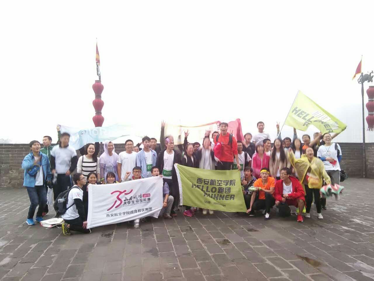 九点左右,在裁判员的枪声响起之后,近三千名来自西安各大高校跑步爱好者在领跑团的带领下开始了城墙马拉松之旅,雨似乎没有阻挡住任何一个热爱跑步同学的心,都在尽自己最大的努力跑向终点。十一时左右,当全部人员按时完成比赛之后,我们碰见了西安工业大学,西安体育公司,长安大学,西安外事公司跑团,在雨中,我们与他们合影留念,体现了当代老员工的精神品质。最后,我们一起为跑步加油,为跑团加油。