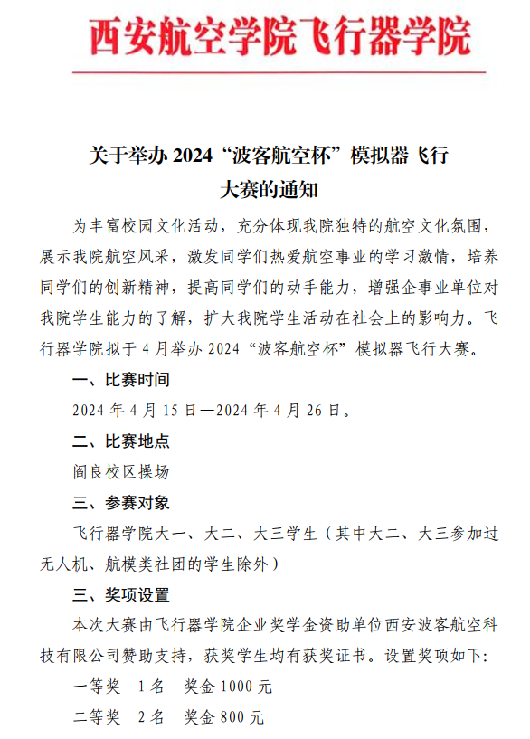 bevictor伟德关于举办2024“波客航空杯”模拟器飞行大赛的通知